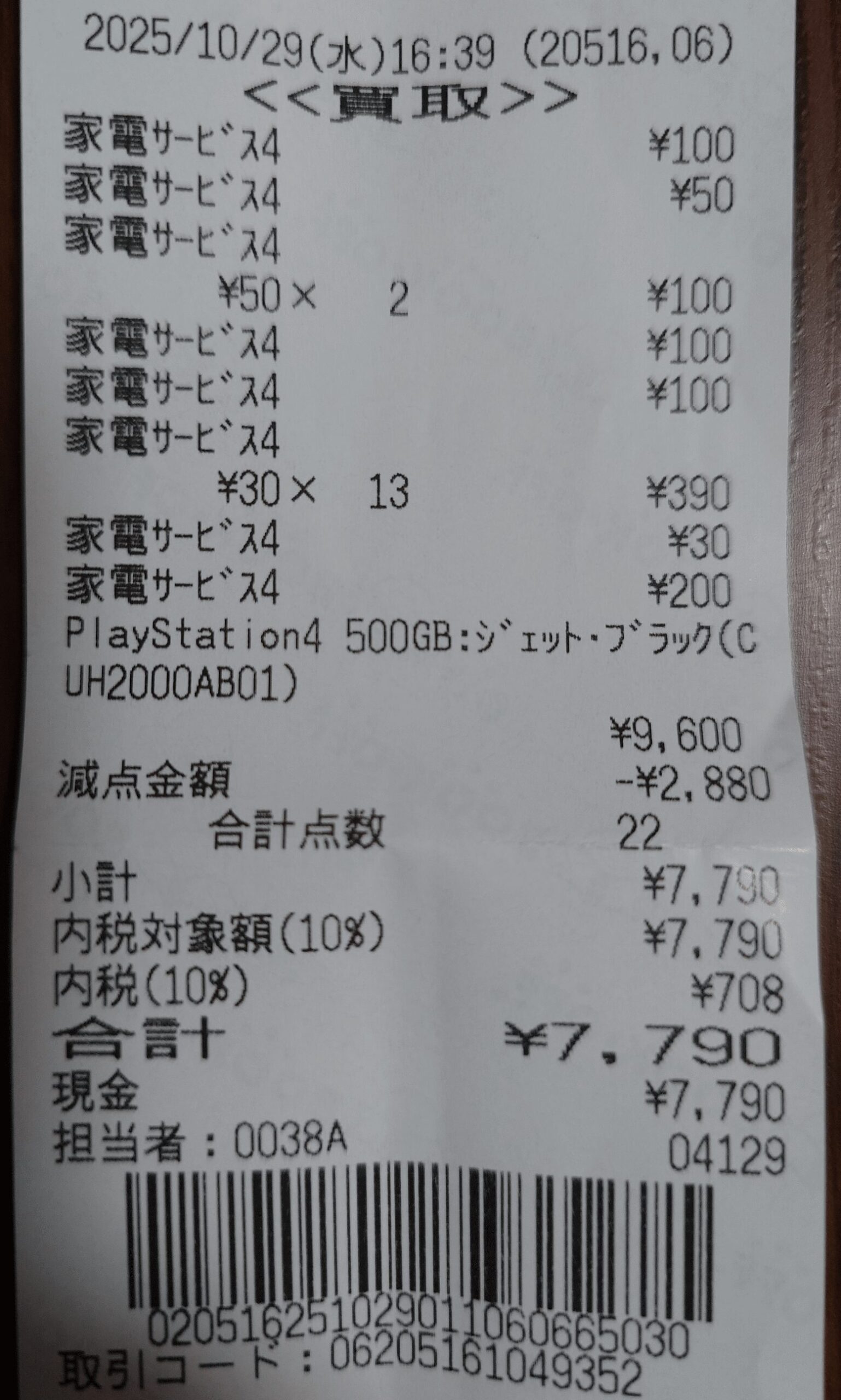 | ハード類 | スーファミ・サターン・PS1は200円以下 PS4(500GB)は6,720円 | 7,790円 |